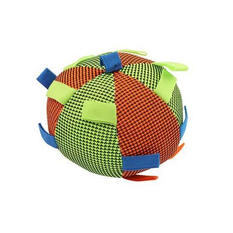 ●メッシュ生地とたくさんの布テープを組み合わせた、BIGなボール型犬用おもちゃです。取ってこい/持ってこい(レトリーブ)遊びが大好き、おもちゃを引っ張ったり振り回して遊ぶのが大好きなワンちゃんにおすすめです。