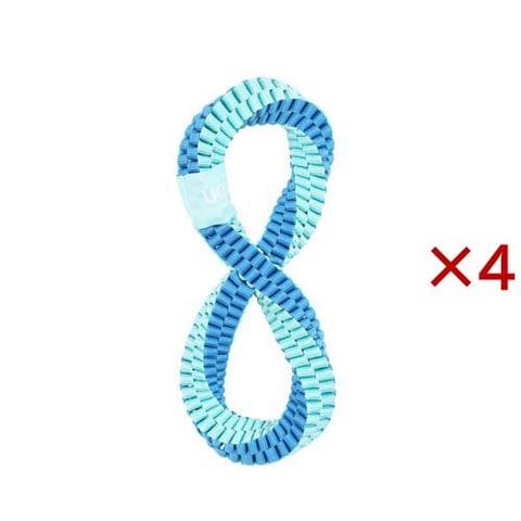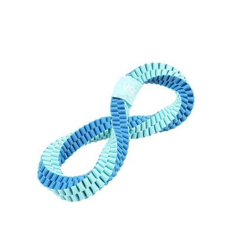 ●丈夫なナイロンテープを2重の輪つなぎのように編み、さらに「無限」を表すインフィニティ型に捻りを加えた不思議な形状の犬用おもちゃです。
