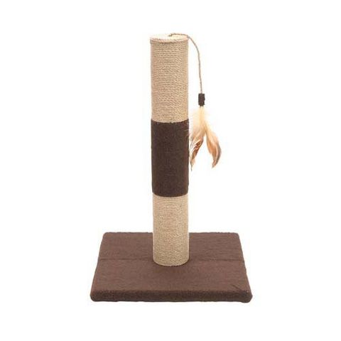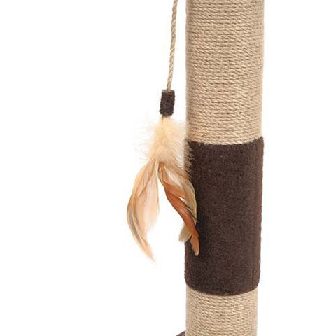 ●直径7.5cmのしっかりとしたポールに麻ロープが巻いてあります。ポールのてっぺんから羽根のおもちゃが吊り下げられており、爪とぎと遊びを同時に楽しめます。