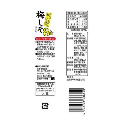 【神州一味噌 即席生みそ汁 梅しそ仕立ての商品詳細】