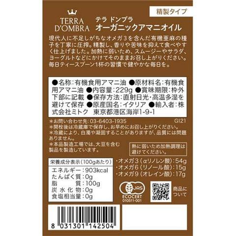 【テラ ドンブラ オーガニックアマニオイル 精製タイプの商品詳細】
