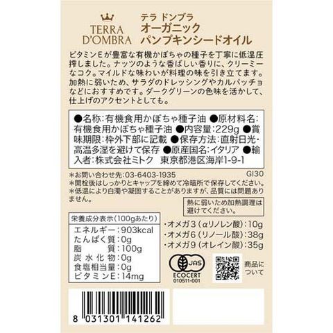 【テラ ドンブラ オーガニックパンプキンシードオイルの商品詳細】
