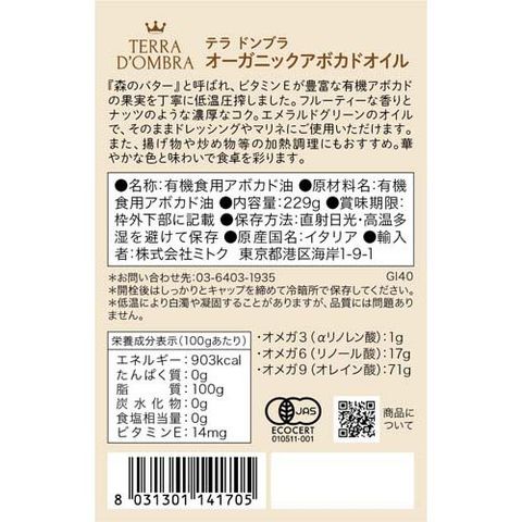 【テラ ドンブラ オーガニックアボカドオイルの商品詳細】