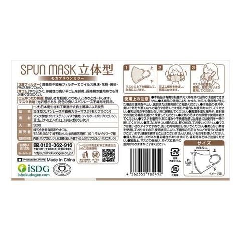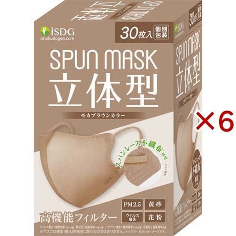 立体型スパンレース不織布カラーマスク モカブラウン (30枚入×6セット)