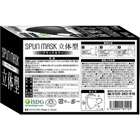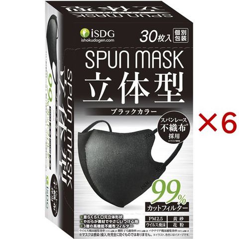 立体型スパンレース不織布カラーマスク 個包装 ブラック (30枚入×6セット)