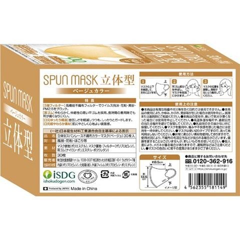立体型スパンレース不織布カラーマスク 個包装 ベージュ (30枚入×6セット)