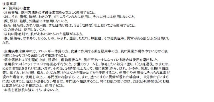 ※塗り始めてから最大10分を超えない範囲で使用すること。(除毛時間はムダ毛の量や毛質により個人差がある。)