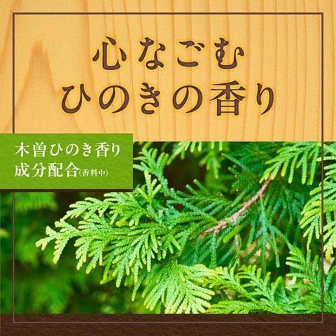 ●木曽ひのき香り成分配合(香料中):木曽産のひのきの香りを分析し、再現した香り成分を配合しています。