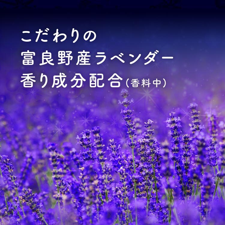 ●富良野産ラベンダー香り成分配合(香料中):富良野産のラベンダーの香りを分析し、再現した香り成分を配合しています。