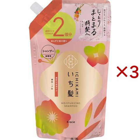 いち髪 濃密W保湿ケア シャンプー 詰め替え 大容量 (640ml×3セット)