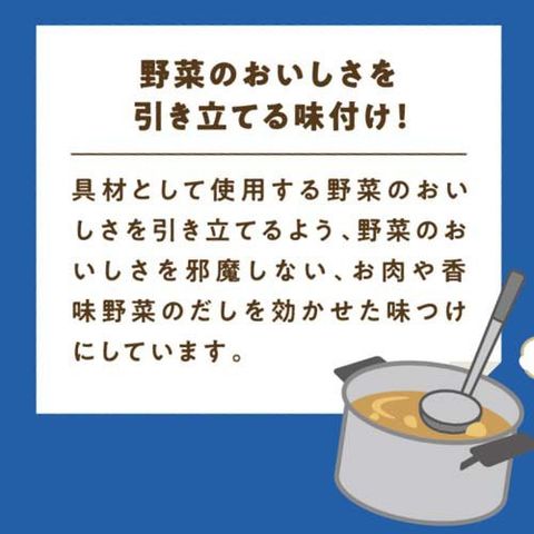 ※野菜をたくさん加えた場合は少し味がうすくなりますので塩、こしょう等で味を調えてください。