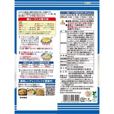 | ビーフン(米(タイ)、でん粉/糊料(繊維素グリコール酸Na)、乳化剤、リン酸塩(Na))、液体ソース(食塩(国内製造)、砂糖、ホタテシーズニングオイル(植物油脂、ホタテ貝、しょうゆ、しょうが)、動物油脂、ジンジャーペースト、清酒、チキンエキス、ポークエキス、植物油脂、ガーリックパウダー、おきあみエキス、オニオンパウダー/調味料(アミノ酸等)、酒精、増粘剤(キサンタンガム)、香料、酸化防止剤(ビタミンE)、(一部にえび・小麦・ごま・大豆・鶏肉・豚肉を含む)) |