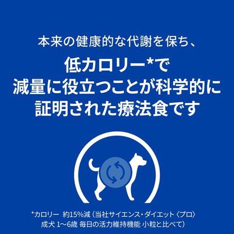 ●この製品は、独自の原材料と低カロリーで、60日間で13%の減量*に役立つことが科学的に証明されたフードです(*ヒルズデータ)。
