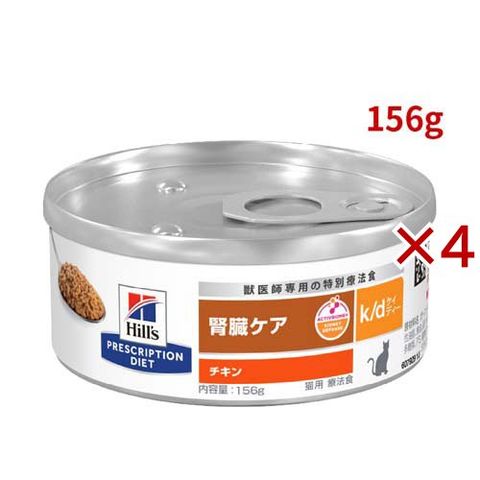k/d 缶詰 チキン 腎臓ケア 猫用 特別療法食 キャットフード ウェット ケイディー (156g×4セット)