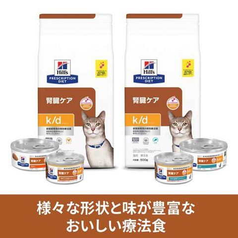●ヒルズの栄養学者と獣医師が開発したプリスクリプション・ダイエット 猫用 k/d ケイディーは、リンやナトリウムなどの調整により、あなたの愛猫の腎臓ケアをサポートする特別療法食です。