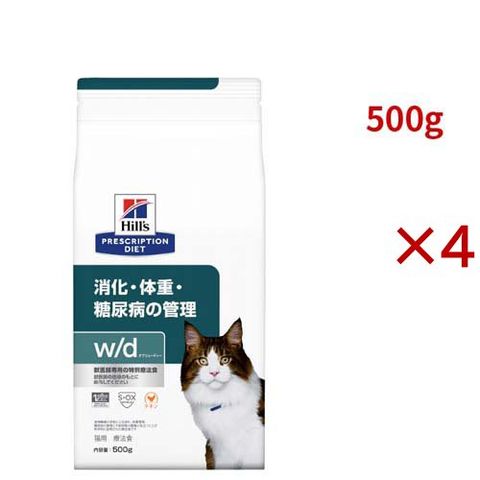 w/d チキン 消化/体重/糖尿病管理 猫用 特別療法食 キャットフード ドライ (500g×4セット)