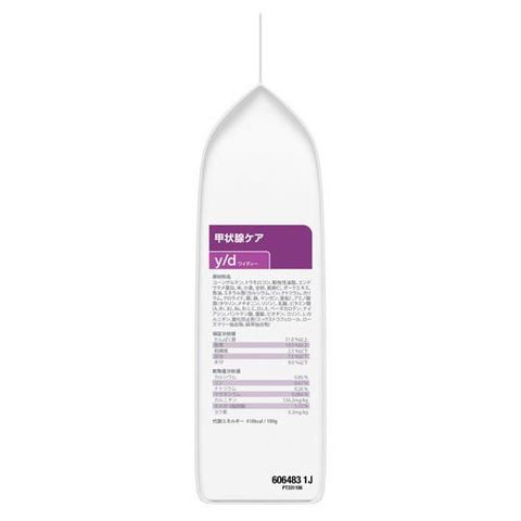 ・ヨウ素を他の食物(おやつや他のペットフードなど)から摂取すると低ヨウ素食の製品特性を損ないます。獣医師の指導に従ってy/dだけの食事を与えることが大切です。