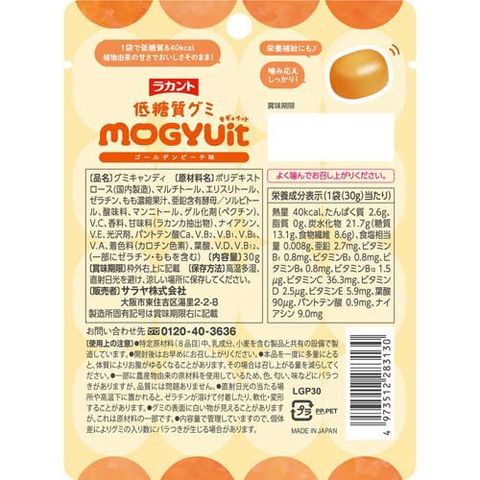【ラカント低糖質グミ MOGYUit ゴールデンピーチ味の商品詳細】