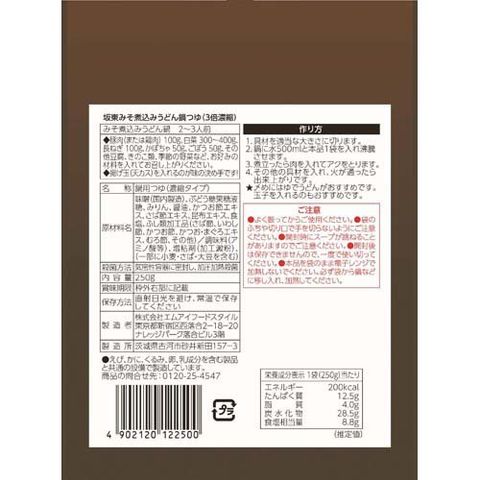 坂東みそ煮込みうどん鍋つゆ (250g×12セット)