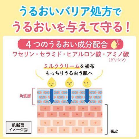 ●4つのうるおい成分配合:ワセリン・セラミド・ヒアルロン酸・アミノ酸 (グリシン)