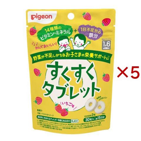 ピジョン すくすくタブレット いちご味 赤ちゃんおやつ (30粒入×5セット)