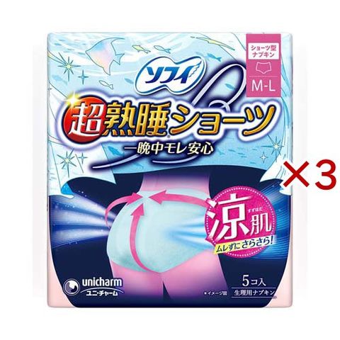 ソフィ 超熟睡ショーツ 涼肌 ML 夜用 生理用ナプキン (5枚入×3セット)