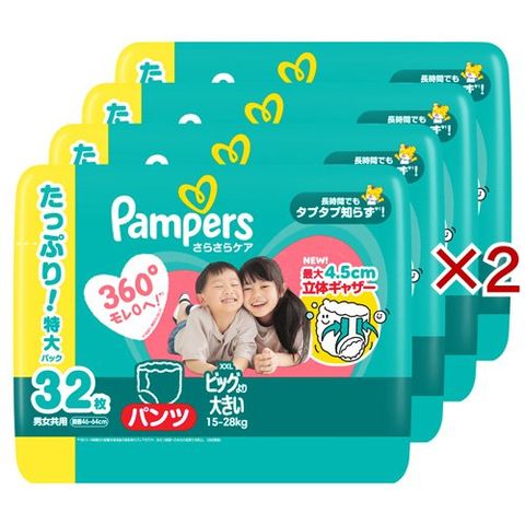 パンパース さらさらケア オムツ パンツ ビッグより大きいサイズ 15-28kg (4袋入×2セット(1袋32枚))