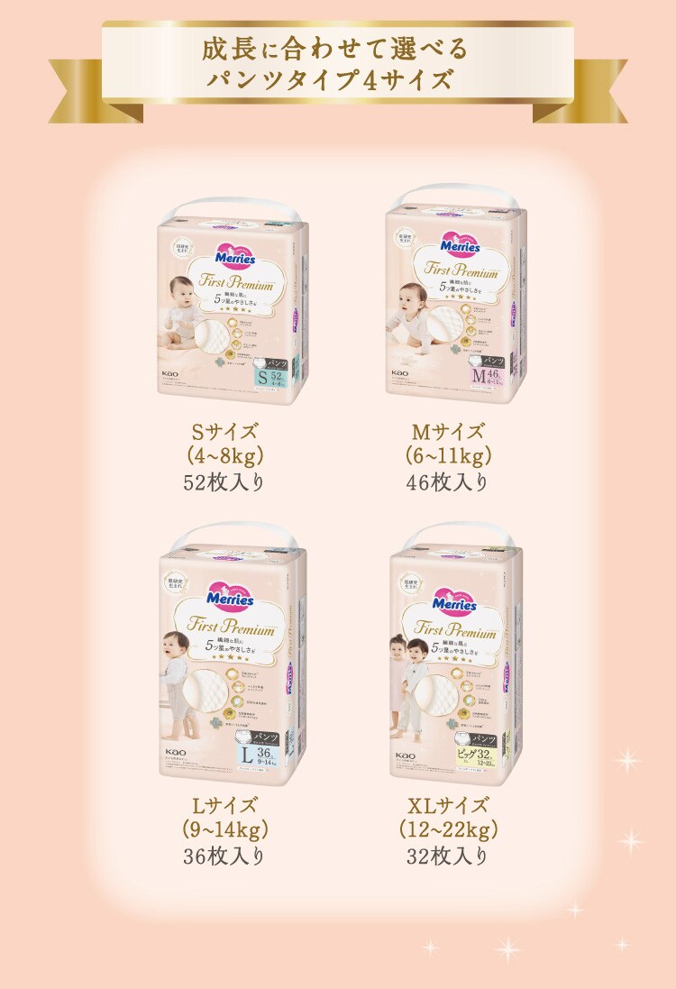 メリーズ おむつ パンツ ファーストプレミアム Mサイズ 梱販売用 (4個入×2セット(1個46枚))