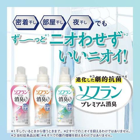●進化した※1劇的抗菌※2で、生乾きが気になる密着干し・部屋干し・夜干しでもずーっと※3ニオわせない※4。