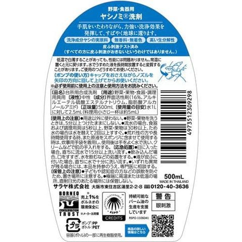 【ヤシノミ洗剤 野菜・食器用 本体の商品詳細】