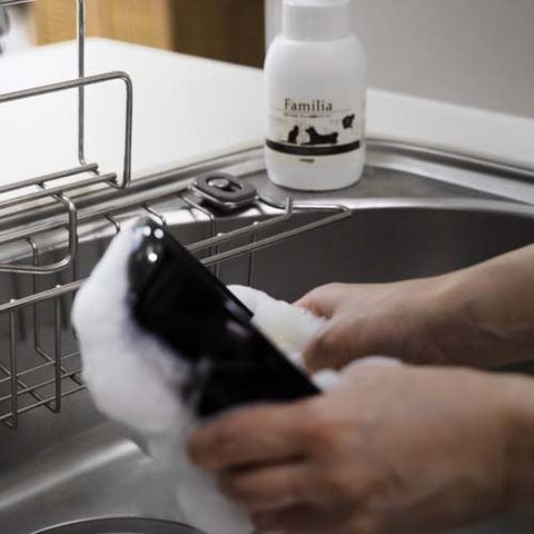 濡れたスポンジに適量を取りご使用ください。その後、泡を十分に洗い流してください。