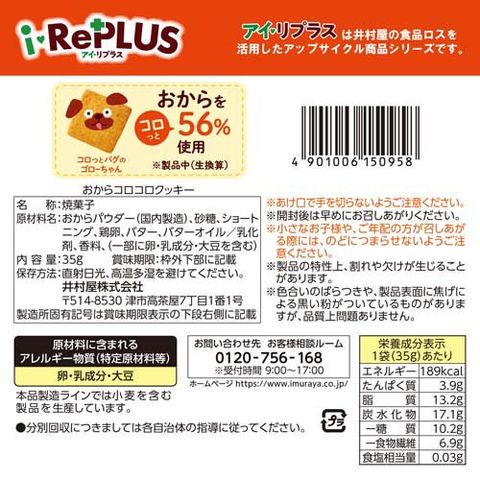 | おからパウダー(国内製造)、砂糖、ショートニング、鶏卵、バター、バターオイル/乳化剤、香料、(一部に卵・乳成分・大豆を含む) |
