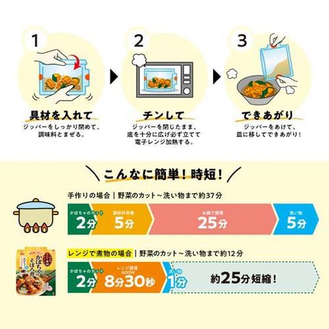 ●レンジ対応チャック付きパウチでおかずがあと1品ほしいときに、時間のかかる煮物を簡単に作ることができます。
