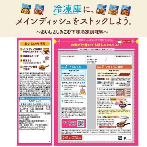 ・下ごしらえ後はすぐに冷凍庫で保存してください。