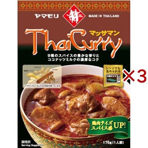 | 鶏肉、野菜(じゃがいも、玉ねぎ)、ココナッツミルク、大豆油、ココナッツパウダー、タイカレーペースト、砂糖、ナンプラー、落花生、タマリンドペースト、食塩、香辛料/増粘剤(加工デンプン)、ph調整剤、着色料(カロチノイド)、(一部にえび・乳成分・落花生・大豆・鶏肉を含む) |