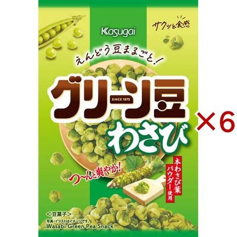 | えんどう豆(輸入)、でん粉、食用油脂、砂糖、小麦粉、水あめ、食塩、ぶどう糖、配合調味料、わさび葉パウダー/香料、調味料(アミノ酸等)、膨脹剤、環状オリゴ糖、乳化剤、着色料(黄4、青1)、(一部に小麦・大豆を含む) |