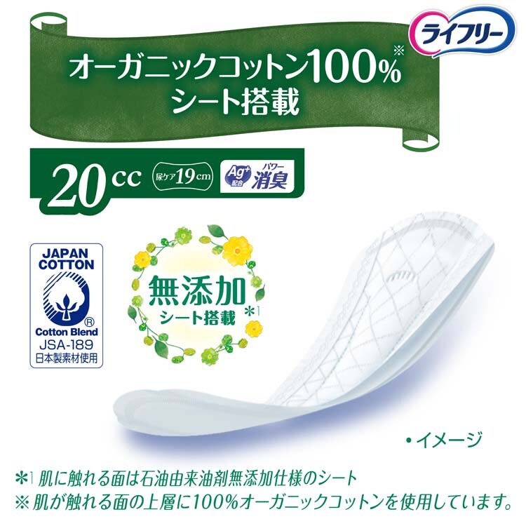 【ライフリー さわやかパッド オーガニックコットン 20cc 女性用 尿ケアパッド 19cmの商品詳細】