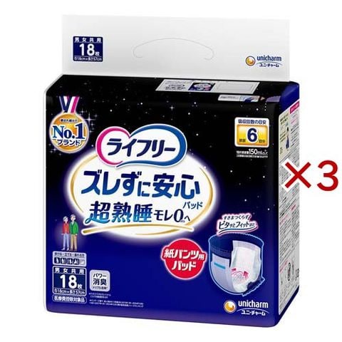 ライフリー ズレずに安心 紙パンツ専用尿とりパッド 夜用 6回 (18枚入×3セット)