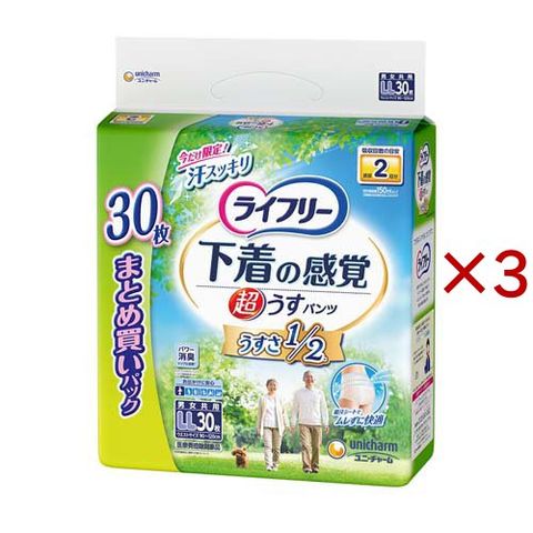 ライフリー 超うす型 下着の感覚 2回 LL 介護用おむつ (30枚入×3セット)