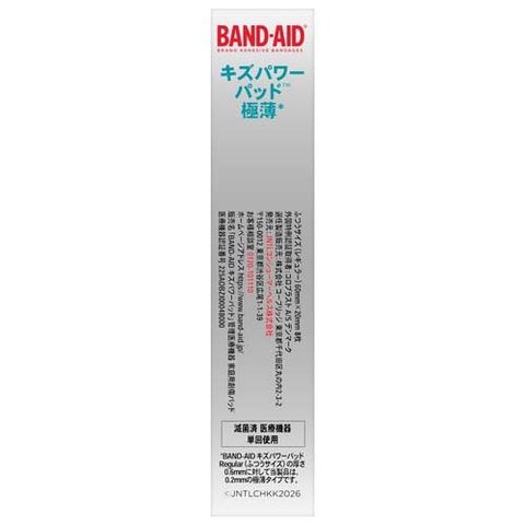 ※2 BAND-AIDキズパワーパッドRegular(ふつうサイズ)の厚さ0.6mmに対して当製品は、66%薄い0.2mmの極薄タイプです。