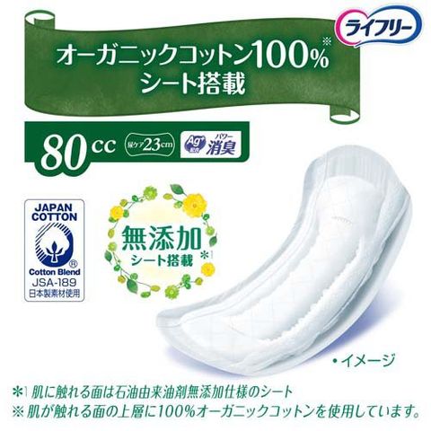 【ライフリー さわやかパッド オーガニックコットン 80cc 女性用 尿ケアパッド 23cmの商品詳細】