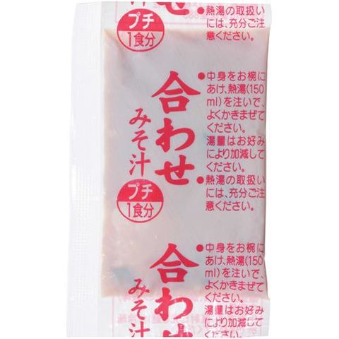 | 米みそ(国内製造)、豆みそ、食塩、わかめ、還元水飴、かつお節粉末、砂糖、たん白加水分解物、宗田かつお節粉末、かつおエキス、昆布エキス/酒精、調味料(アミノ酸等)、(一部に大豆を含む) |
