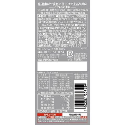 ●本枯鰹節、鯖節、宗田鰹節と丸大豆の白醤油を使用し、淡色で上品な風味に仕上げた白だしです。