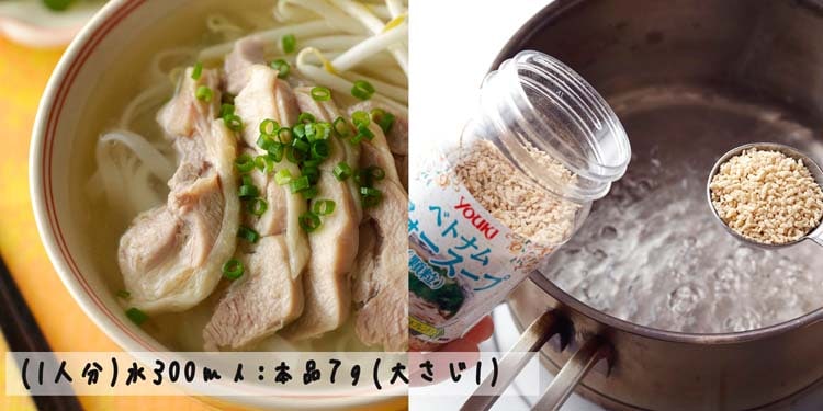 ●チキンをベースにして、香辛料をバランス良く配合した爽やかな酸味のフォー用スープの素です。