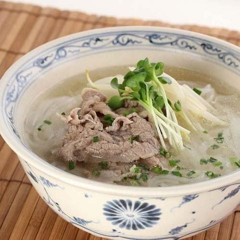 ※市販のフォーを時間通りに茹でます。お好みで、ナンプラーやライム果汁をたしてください。