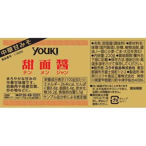 | 100g当たり エネルギー:264kcaL、たんぱく質:8.8g、脂質:8.4g、炭水化物:38.2g、食塩相当量:5.5g |