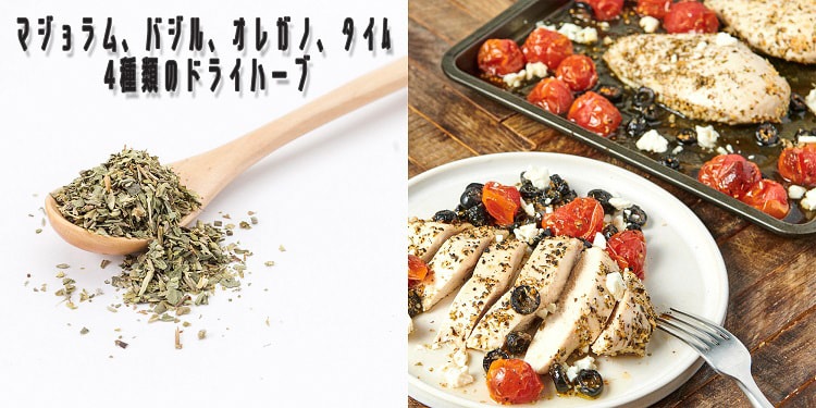 | マジョラム(エジプト)、乾燥バジル、オレガノ、タイム |