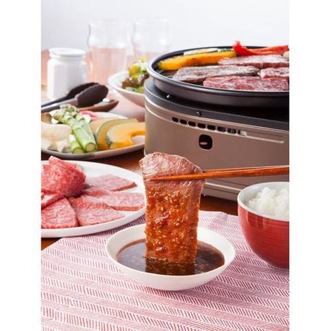 (1) 牛肉を網にのせ、表・裏を7分ずつ加熱します。(遠火でじっくり焼きます)