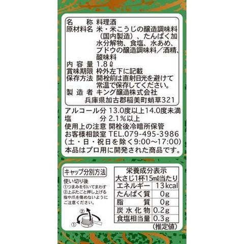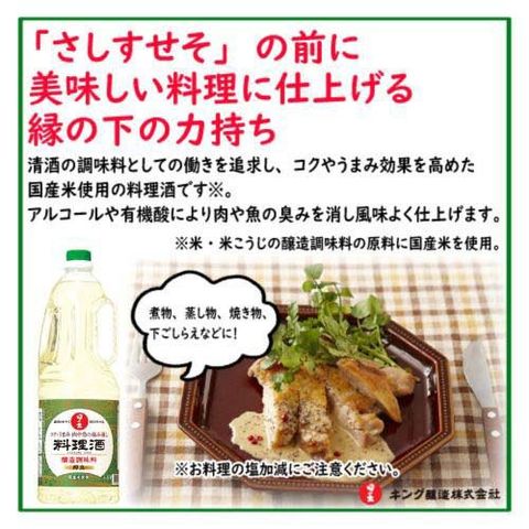 ●清酒の調味料としての働きを追求し、コクや旨み効果を高めた料理酒(加塩)です。
