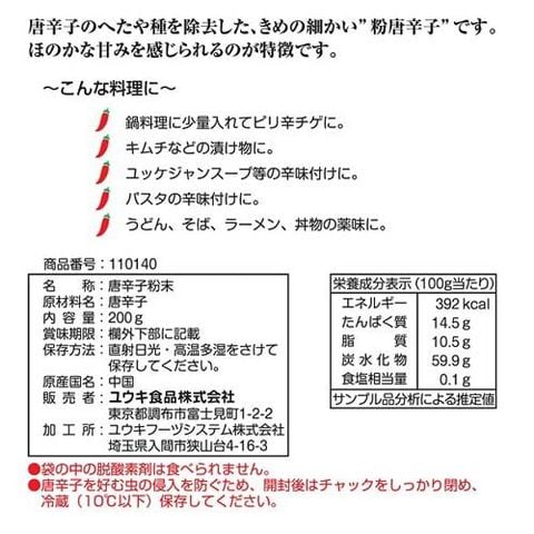 【ユウキ食品 粉唐辛子(韓国料理用)の商品詳細】